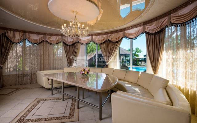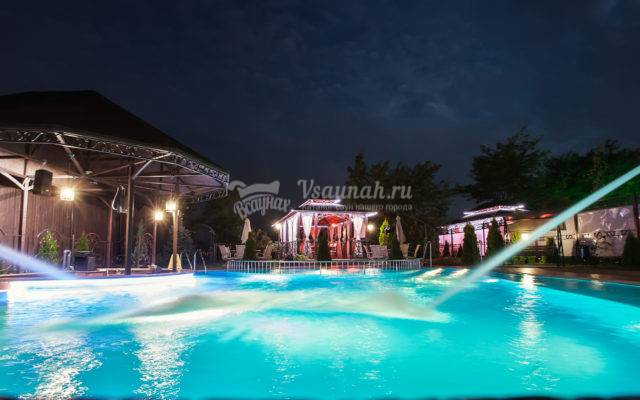 Бассейн, ледяная купель ,обливное ведро, бильярд, массаж, спа процедуры, караоке, плазменная палень, кондиционер, Wi-Fi, комната отдыха,банные принадлежности, парковка, услуги парильщика